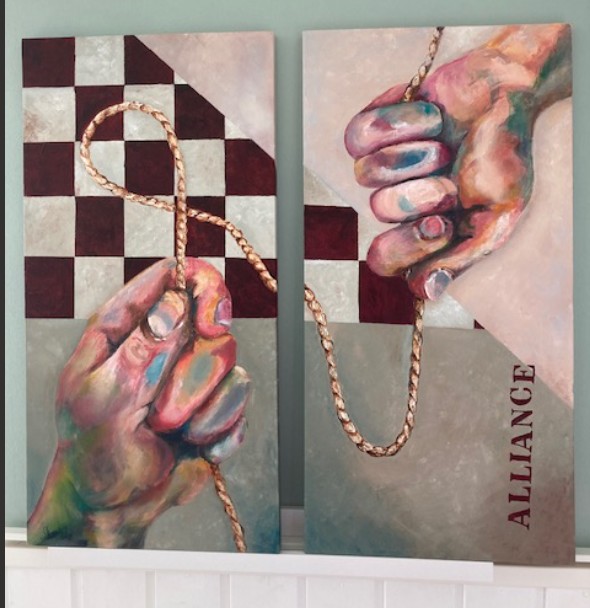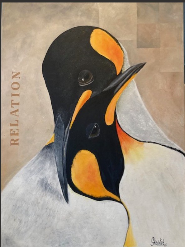 Titlen “Relation” var en bunden opgave fra Herning Billedskole, og da jeg længe haft en tanke med om at male suler, var det klart, at jeg skulle udnytte den oplagte titel. Denne fantastisk smukke havfugl holder nemlig sammen i par livet igennem, og hjælpes ad med at ruge og opfostre deres unger. Suler kan med enorm fart dykke efter føde – i dyk på op til 22 meter under havoverfladen.